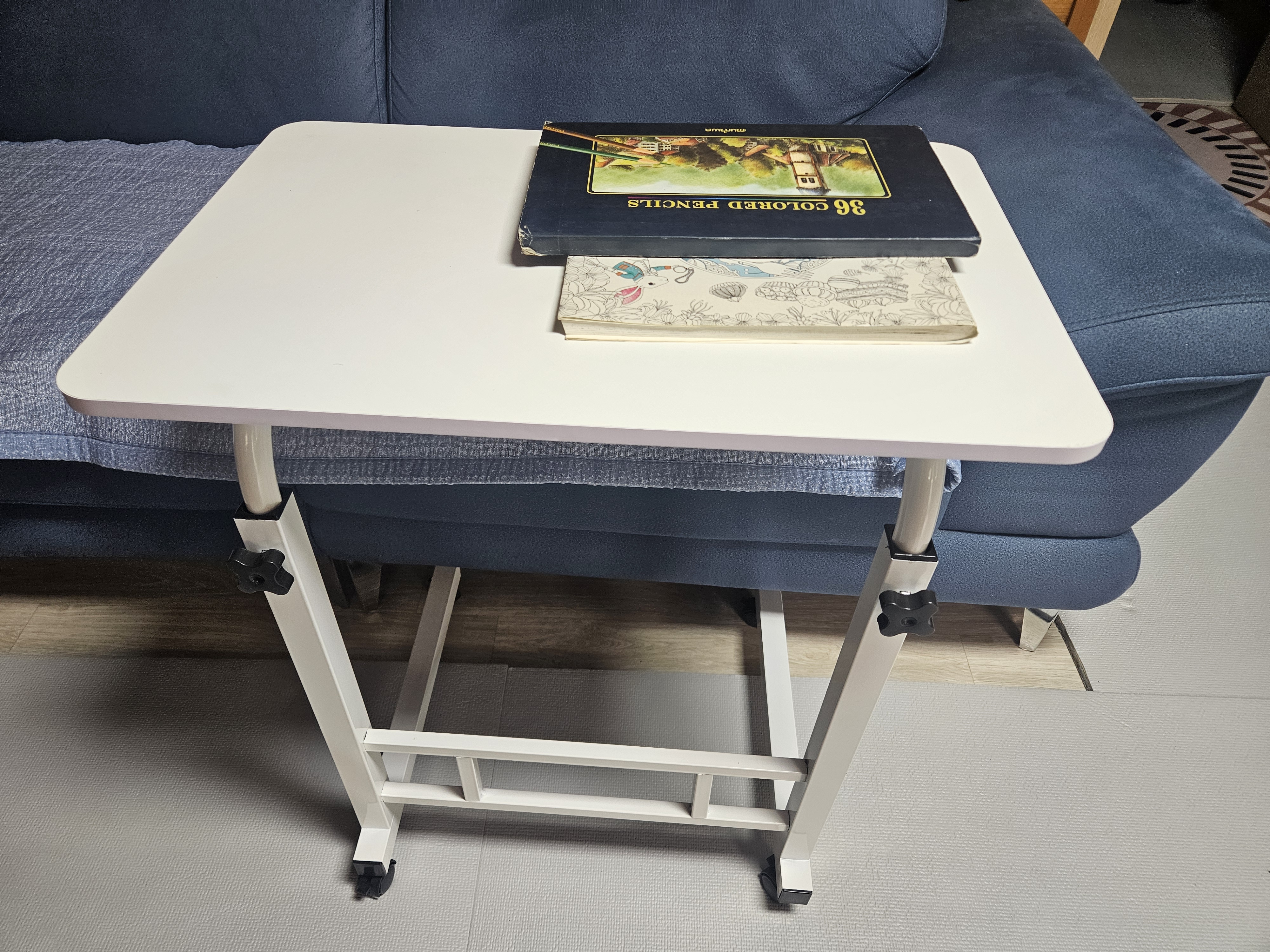 실제 사용하면서 가장 만족스러웠던 점은 **높이 조절 기능**과 **넓은 상판**이었습니다. 소파 높이에 맞춰 사용할 수 있어서 목이나 어깨가 덜 아프고, 노트북을 올려두고 작업하기에도 딱 좋은 구조입니다.